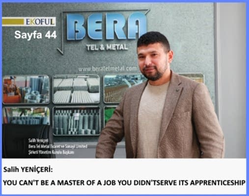 Salih Yeniçeri, Chairman of the Board of Directors of Bera Tel Metal Trade and Industry Limited Company, who started his working life as a child, said in an interview with EKOFULL magazine that you cannot be a master of a job that you have not apprenticed to. Yeniçeri, who attributes the secret of success to hard work by doing what he loves, stated that their goal is to establish a factory with the capacity to serve Türkiye and even abroad.